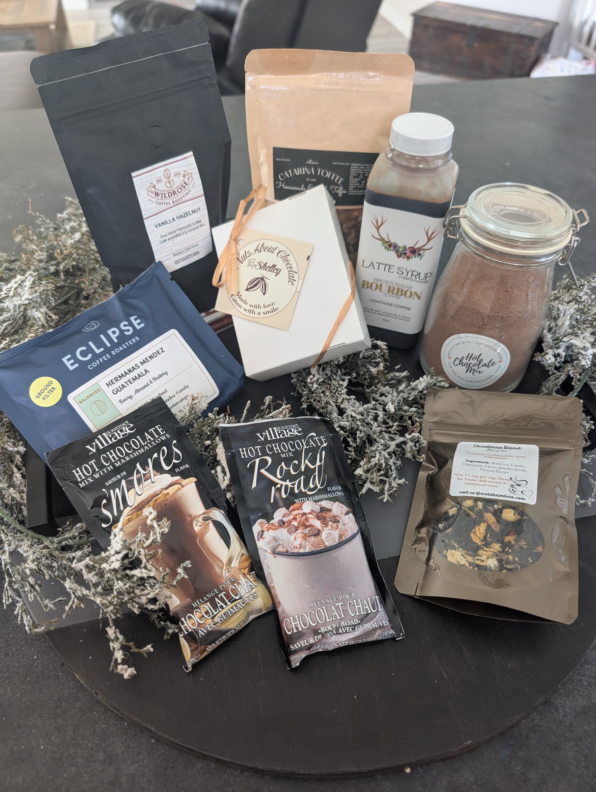 Indulge in a caffeine lover's dream with our Caffeinated Box! This gift box is overflowing with everything you need for the perfect cup- from premium coffee beans and loose leaf teas to rich hot chocolate and specialty syrups. Complete with chocolates, toffee, and a hand-crafted wooden tray, it's the ultimate gift for any occasion.